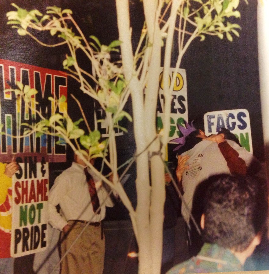 We’d spent the morning curled up in his hotel room bed wrapped around each other just in our grief, just telling stories about him and laughing. And below us we could hear Fred Phelps and his family in the front drive of the hotel, and their screamings and their yellings were coming through the window all muffled. And they’d shown up like clockwork to this protest at the conference. And I just looked at Mitch and I was like… “Let’s go down there,” I said. “Peter would be down there.”